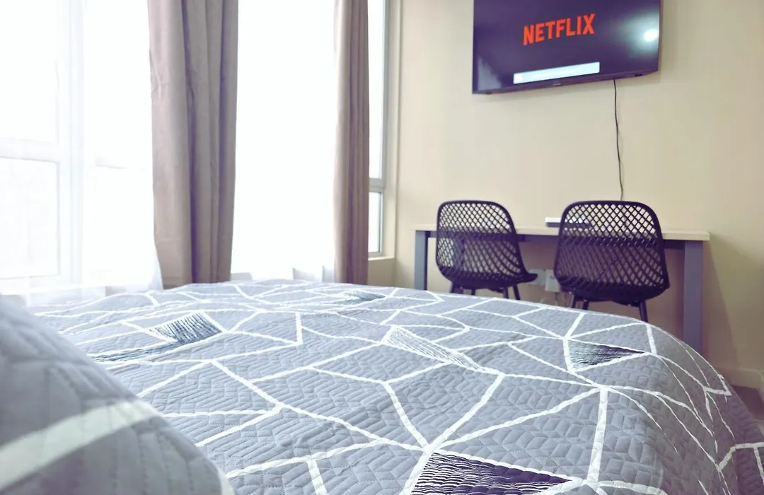 The apartment is furnished with an equipped kitchenette for guests' convenience. The property is just moments from Bustos / Los Leones bus stop.